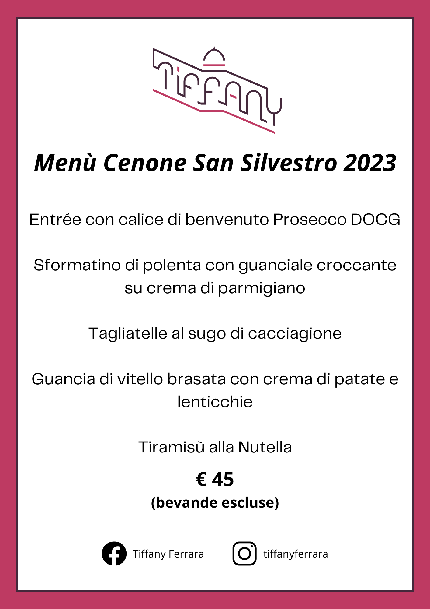 Il Tiffany presenta il menù di San Silvestro 2023!